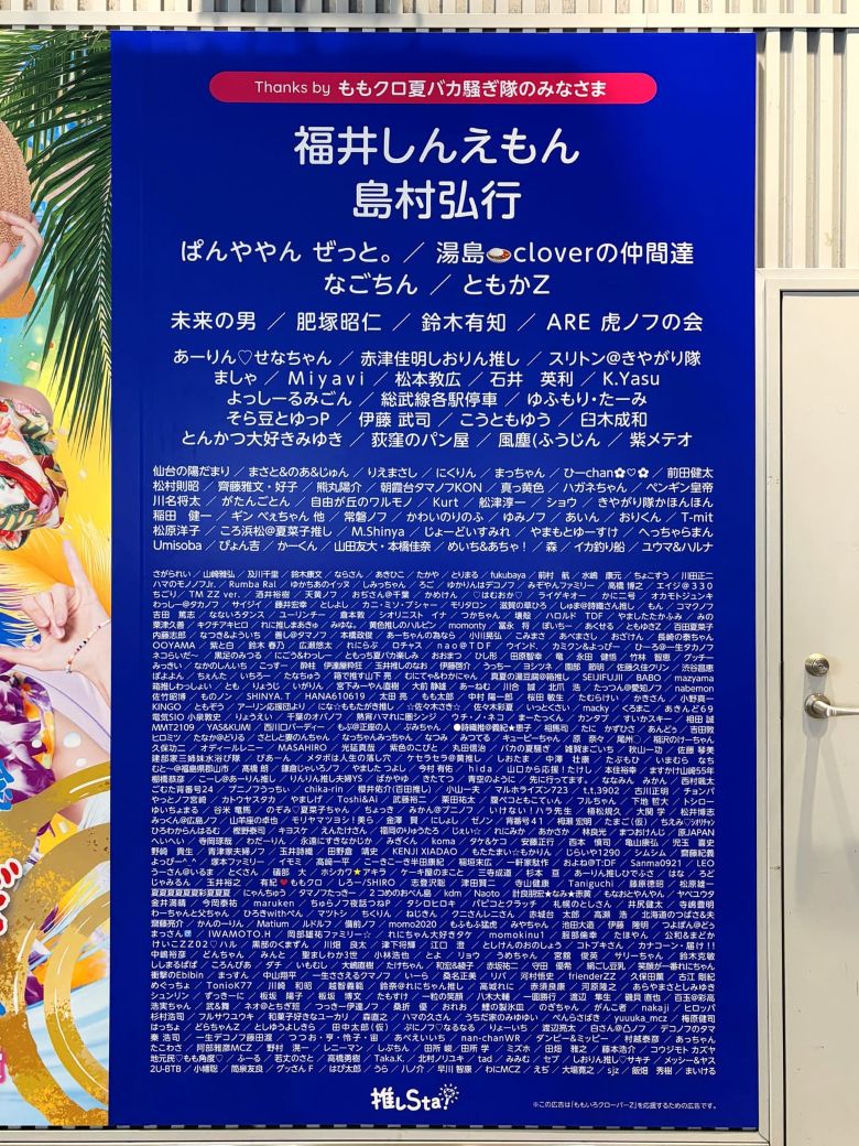今回の広告展開はJR東日本グループのサービス「推しSta!」によるもので、企業・アーティストとJR東日本の公認コラボ企画となっている。企画のパッケージ化・ECサイトを通した参加のため、一個人が参加するハードルを下げ、かつ金銭・個人情報のやりとりの安全性が高いという特長を持つ。 「ももクロ夏のバカ騒ぎ2025」コラボも、関内駅北口に設置されたパネルに「応援チケット」購入者たちの名前が掲載され、またチケットをより多く購入した人物名の名前が大きくなるという仕組みになっている。チケットは約600人が購入し、パネルの半面を埋め尽くして連名された。