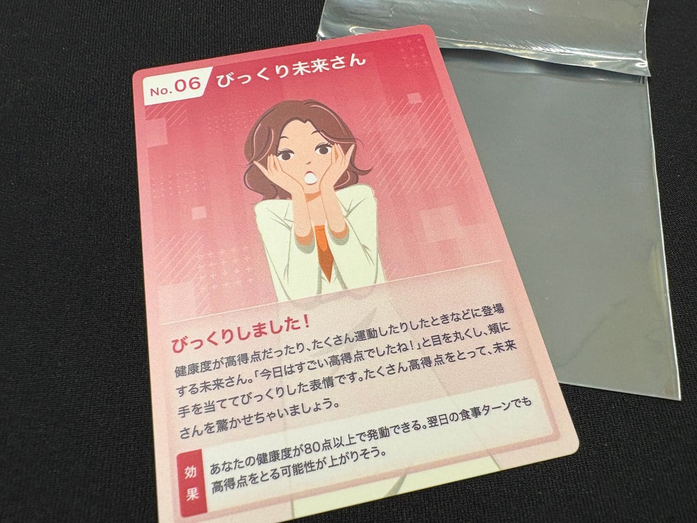 OOHとカードには、食事記録の結果や季節行事にちなんだ様々な表情、ポーズ、衣装の未来さんと、その未来さんを紹介するテキストがつづられ、担当者はこのテキスト作成に力を入れたという。未来さんのポリシーをカードにも反映させるため、アプリ内のセリフを調整しているメンバーに相談したり、カードゲームらしさを出すため、社内の有識者に監修してもらったり、細部までこだわって作成した。