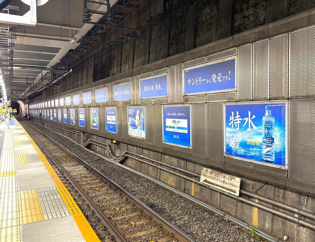車内広告は基本、統一デザイン(サイズは除く)だが、電車の乗り換えにちなみ、山手線、大阪環状線のホームにある電光掲示板や駅名標を模したポスターも掲出。